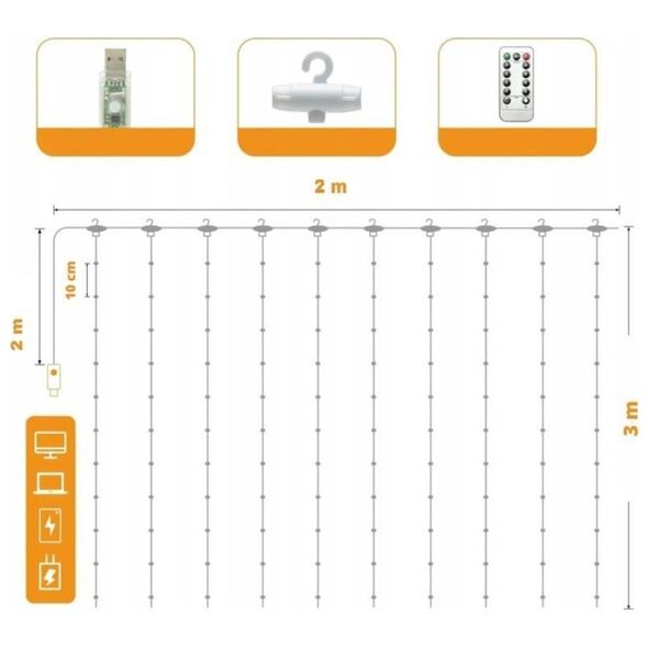 Κουρτίνα LED (100 λαμπάκια LED) 3m x 1m ΘΕΡΜΟ ΛΕΥΚΟ / CIEPŁY BIAŁY