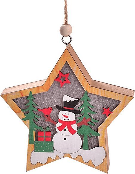Ξύλινο Χριστουγεννιάτικο Φωτιστικό Χιονάνθρωπος - Αστέρι