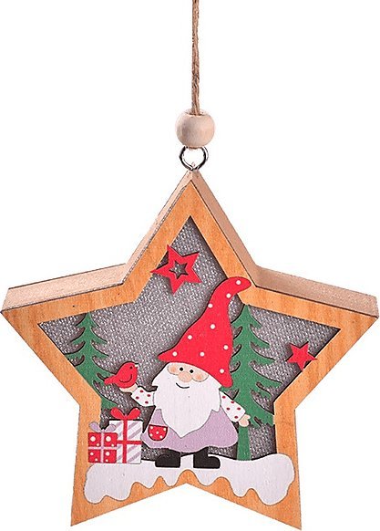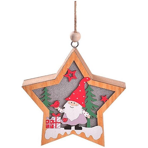 Ξύλινο Χριστουγεννιάτικο Φωτιστικό Σκράτ και δώρο - Αστέρι