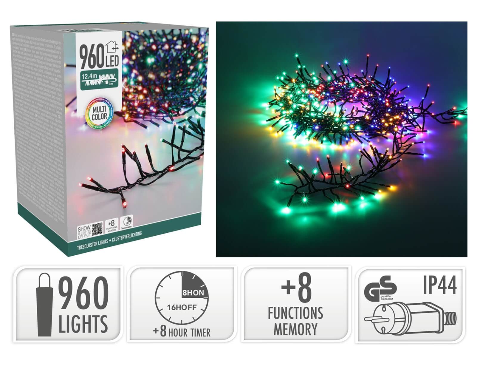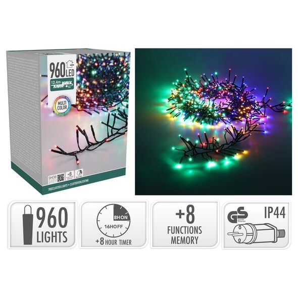 Διακοσμήστε και δώστε λάμψη στο σπίτι σας με τα 960 φωτάκια LED. Είτε δημιουργείτε μια παραδοσιακή, ζεστή ατμόσφαιρα είτε μια ζωντανή, παιχνιδιάρικη εικόνα, έχουμε τα τέλεια φώτα για να ζωντανέψει το όραμά σας. Στολίστε το τζάκι, τη σκάλα, τα φυτά σας ή ακόμα και το υπνοδωμάτιο σας. Είναι ιδανικά για στολισμό πάρτυ αφού θα δώσουν μια επιπλέον εορταστική διάθεση. Απλά αφήστε τη φαντασία σας ελεύθερη. Διαθέτει αντάπτορα, 8 προγράμματα, χρονοδιακόπτη 8 ωρών και το καλώδιο έχει μήκος 12.4m και επιπλέον 3 μέτρα καλώδιο επέκτασης. Έχουν βαθμό στεγανότητας IP44 που τα καθιστά κατάλληλα και για εξωτερικούς χώρους. Η μικρή απόσταση μεταξύ των λαμπτήρων σας επιτρέπει να διακοσμήσετε πλούσια όποιο σημείο του σπιτιού επιθυμείτε. Χαρακτηριστικά
