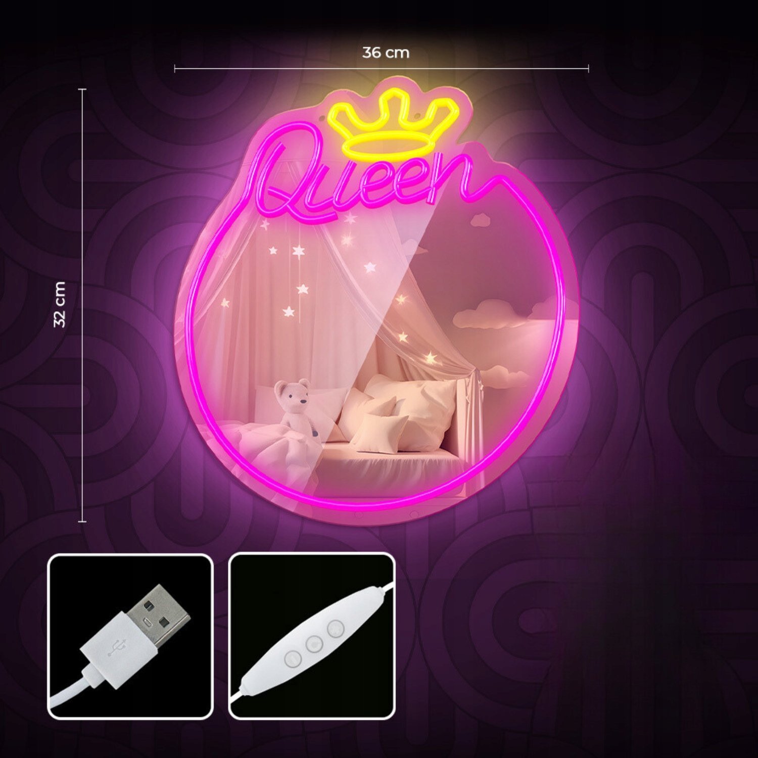 Νέον MIRROR LED QUEEN ζεστό λευκό ροζ FMNE04 Forever Light