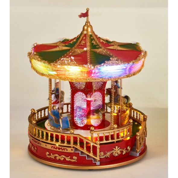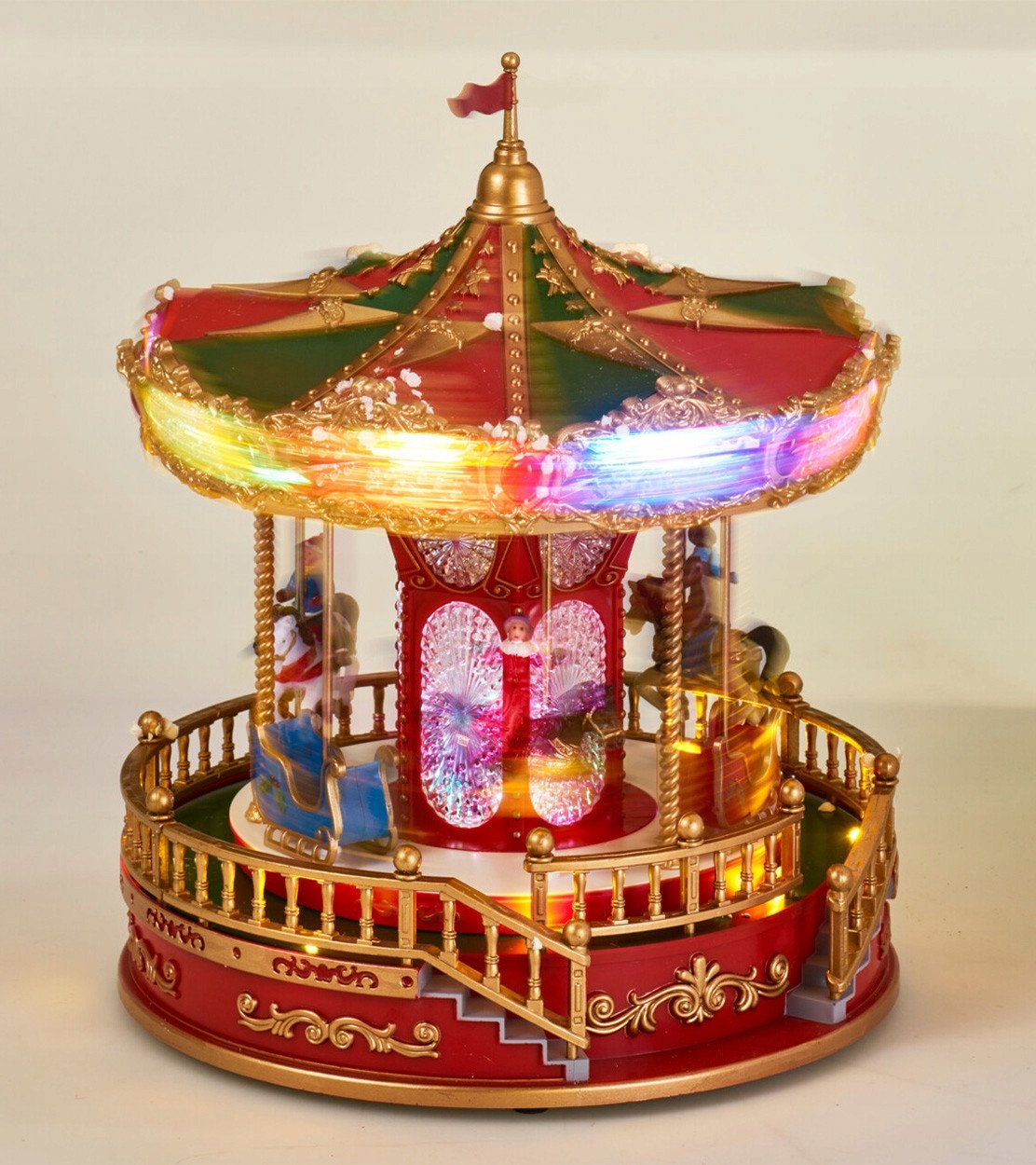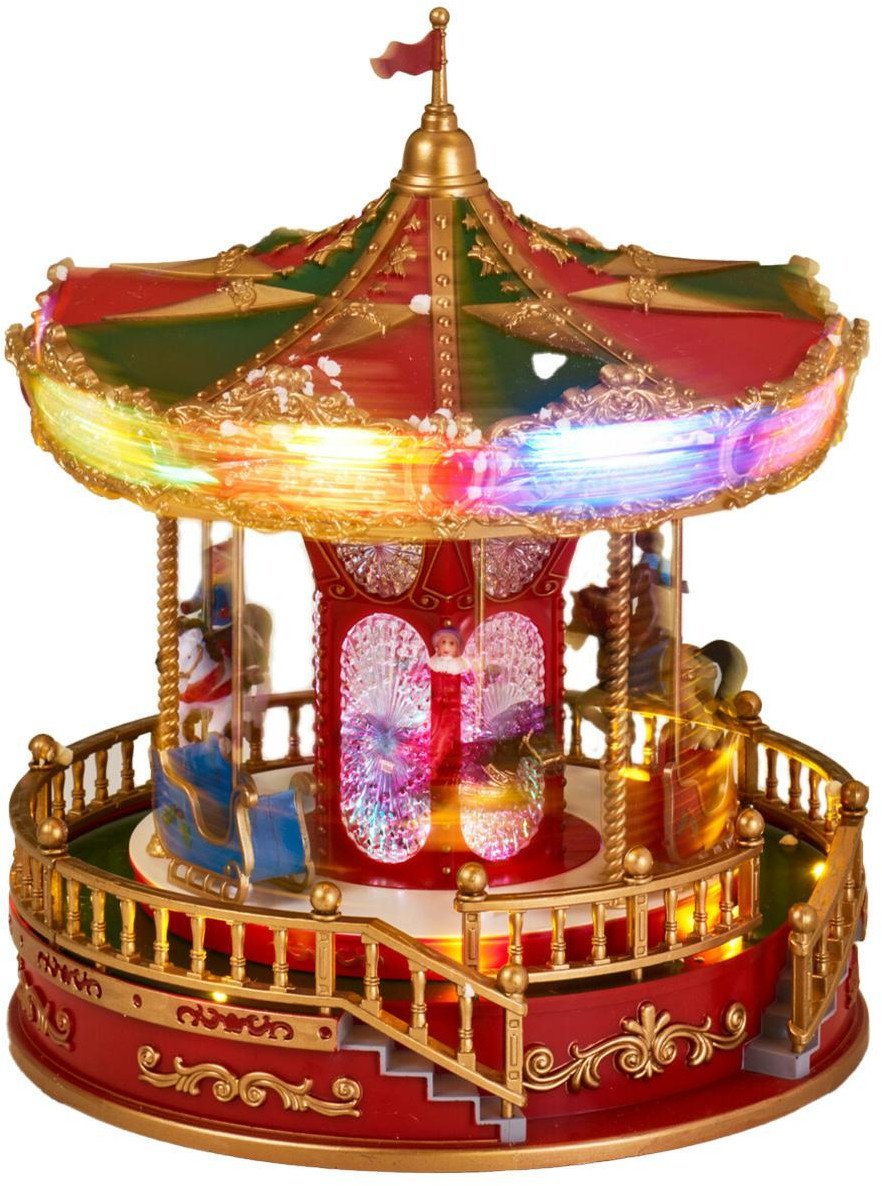 Świąteczna karuzela LED z muzyką i obrotowymi figurkami, 23 x 28 cm