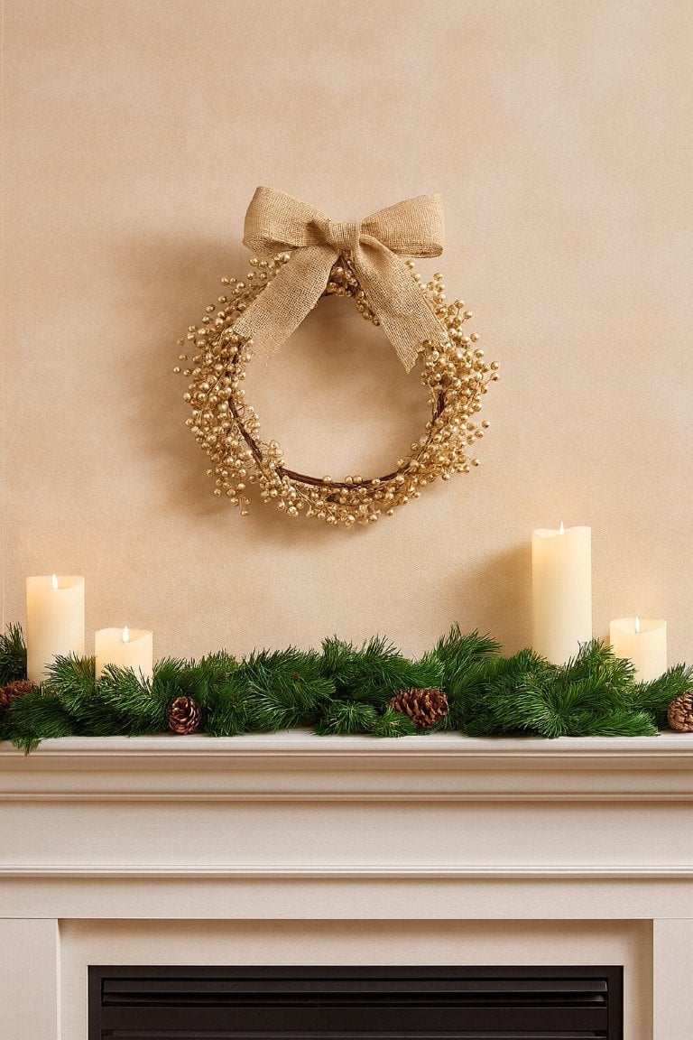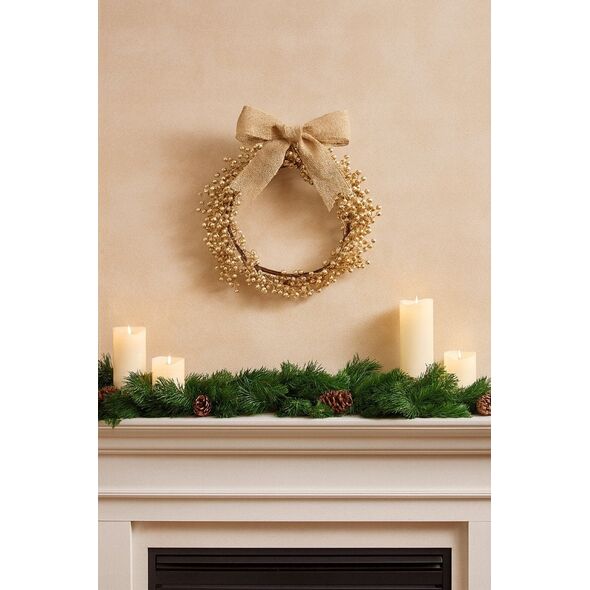 Wieniec świąteczny dekoracyjny z jagodami 50 cm złoty połyskujący