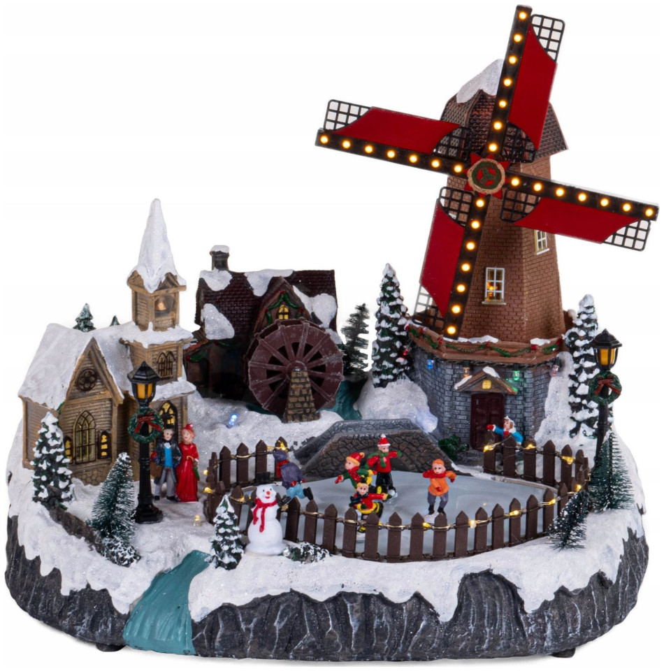 Χριστουγεννιάτικο χωριό με φωτισμό και κινούμενο ανεμιστήρα