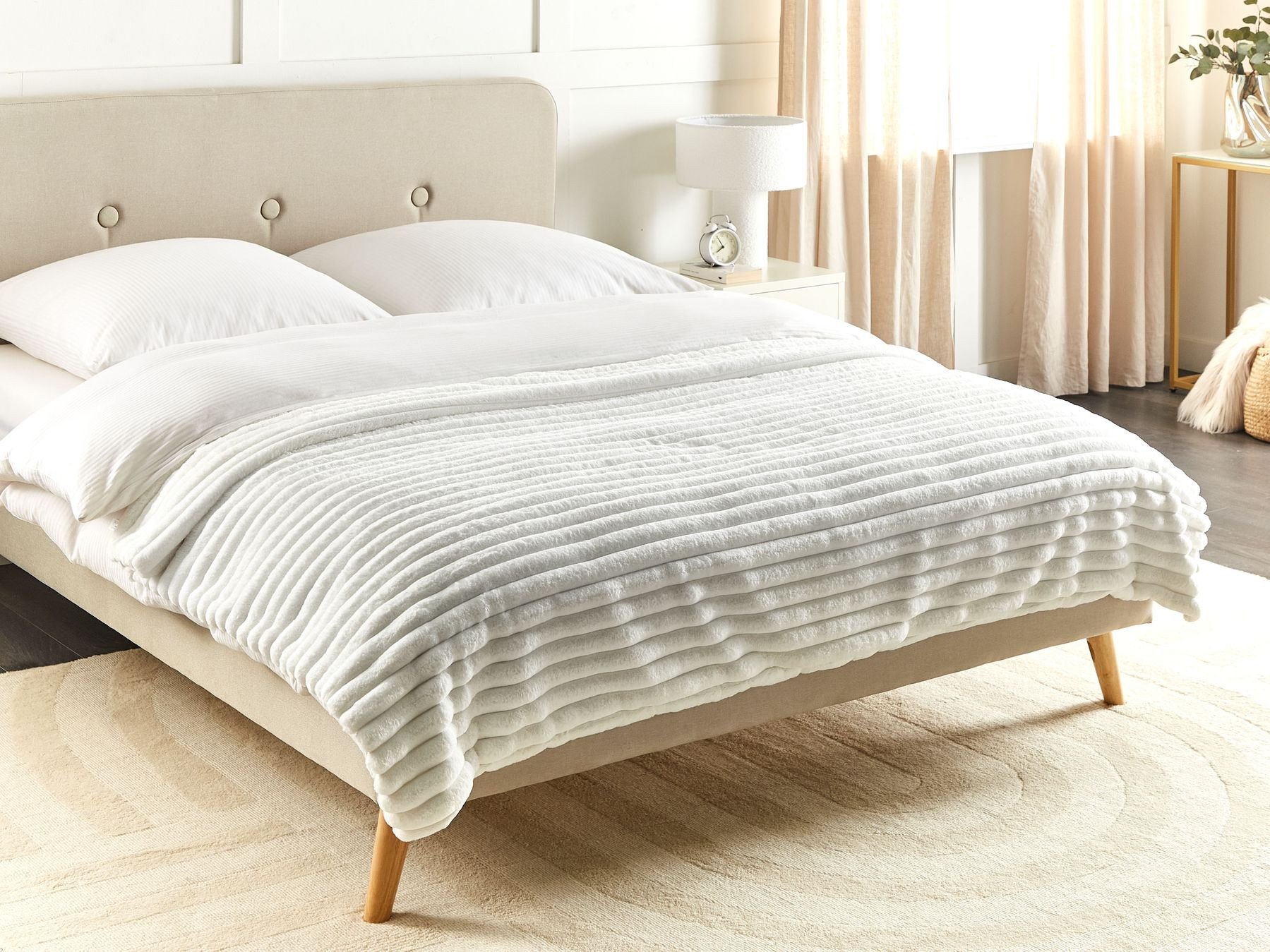Narzuta na łóżko RAKYA Sztuczne futro 150 x 200 cm Biały