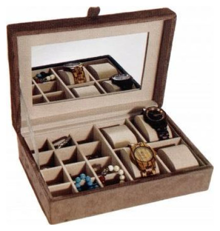 Κουτιά για κοσμήματα Μια κοσμηματοθήκη μπορεί να φιλοξενήσει πολλά και διάφορα αξεσουάρ - από ρολόγια μέχρι κολιέ και σκουλαρίκια. Διαθέτει 16 βαθιές θήκες διαφόρων μεγεθών και μεγάλο καθρέφτη. Τέλειο ως οργανωτής, αλλά και ως επίδειξη για κοσμήματα, ρολόγια και σκουλαρίκια. Παράμετροι: Υλικό: Ύψος βελούδου: 8 cm πλάτος: 25,5 cm βάθος: 16 cm Το προϊόν διατίθεται σε διάφορα χρώματα. Εκδόθηκε τυχαίο χρώμα - σε απόθεμα.{Type} Κουτιά κοσμημάτων