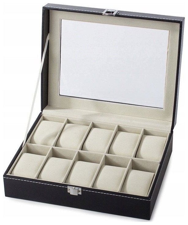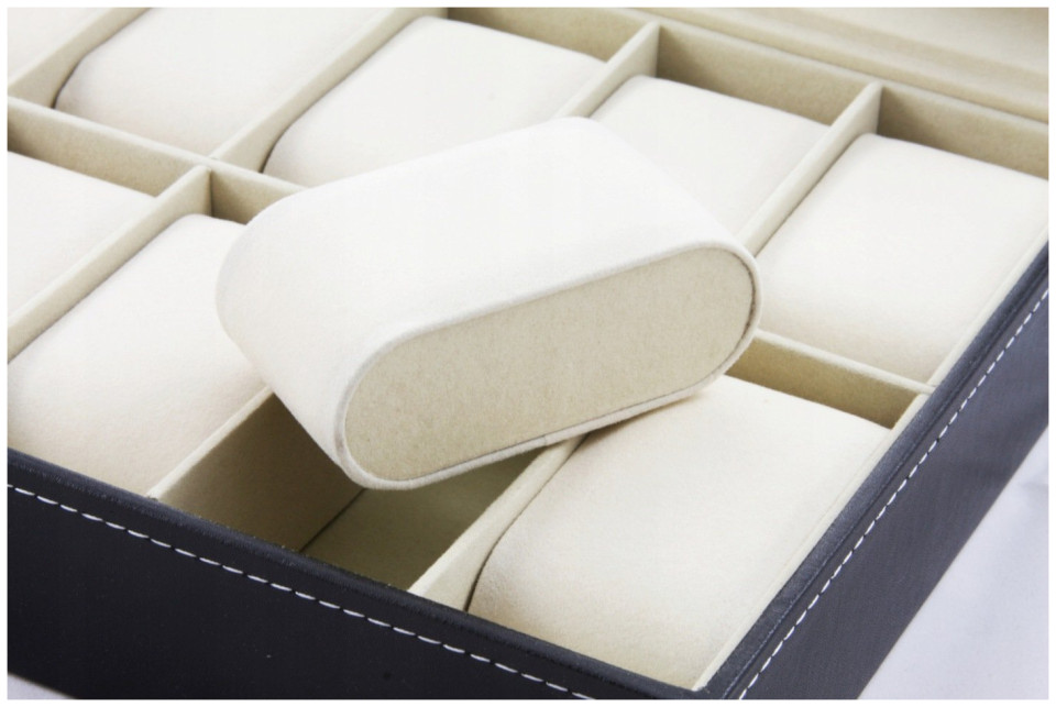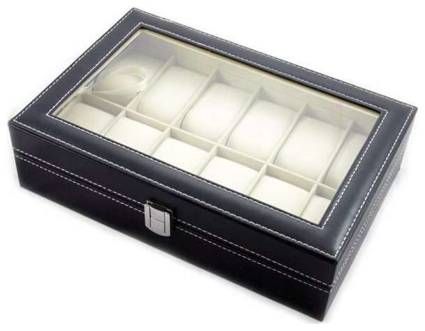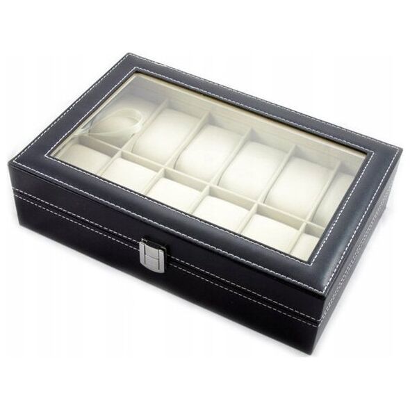 Κασετίνα / Κουτί / Θήκη για 12 ρολόγια Μέγεθος: 30,3 x 20,2 x 7,8 cm Μεταλλικό, συμπαγής κλειδαριά Κουτί καλυμμένο με ανθεκτικό υλικό - οικολογικό δέρμα Στερεό και αισθητική κατασκευή Λεπτό υλικό πλήρωσης Μεγάλο διαφανές παράθυρο Το κουτί είναι ένα ιδανικό προϊόν που σας επιτρέπει να κρατήστε την τάξη στην ντουλάπα / συρτάρια με ρολόγια και κοσμήματα Το κουτί προορίζεται για την αποθήκευση ρολογιών ή μεγάλων κοσμημάτων, όπως βραχιόλια, κολιέ, φουρκέτες, κ.λπ Το κουτί είναι τέλειο για δώρο τόσο για άνδρες όσο και για γυναίκες. Είναι πρακτικό και προστατεύει τέλεια τα ρολόγια και τα κοσμήματα από τη σκόνη και τις γρατσουνιές για αποθήκευση ρολογιών και κοσμημάτων - έως 12 τεμάχια, υψηλής ποιότητας κατασκευή - φθαρμένο και κομψό φινίρισμα από οικολογικό δέρμα, μικρές διαστάσεις, συμπαγές μεταλλικό φερμουάρ, εσωτερικό εξοπλισμένο με 12 αποσπώμενα μαξιλάρια διακοσμημένα με λεπτό υλικό, διάφανη, μεγάλη θήκη διαστάσεις: εξωτερικές διαστάσεις: 30,3 x 20 , 2 x 7,8 cm πλάτος μονής θήκης: 4,7 cm μήκος μονής θήκης: 9,4 cm ύψος μονής θήκης: 3,5 cm διαστάσεις μαξιλαριού: 4,5 x 8 x 3,2 cm Προδιαγραφή: βάρος: 980 αριθμός εσωτερικών θέσεων: 12 12 στο σετ μαξιλάρια από: πλαστικό, οικολογικό δέρμα, μεταλλικά στοιχεία χρώμα: μαύρο και μπεζ Το σετ αποτελείται από: κουτί για 12 ρολόγια / στοιχεία κοσμήματος 12 τμχ εσωτερικά μαξιλάρια