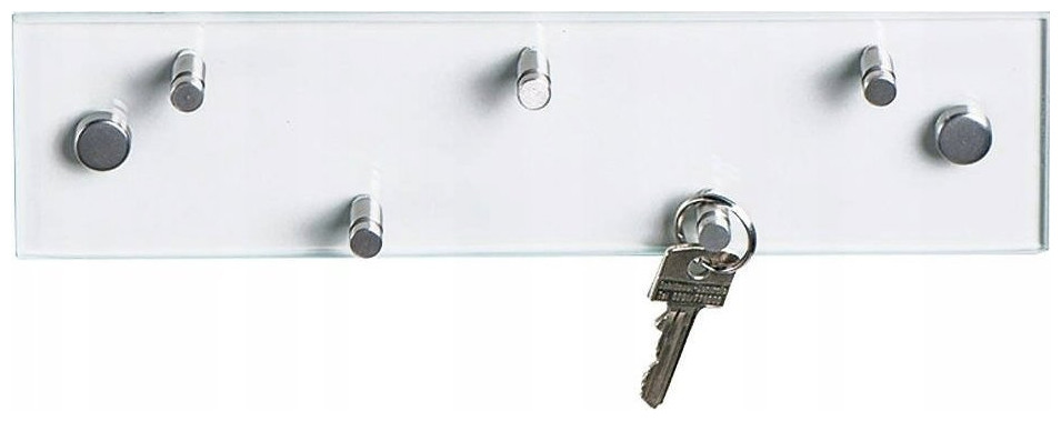 Zeller Κρεμάστρα για κλειδιά 30x8 εκ. + 5 γάντζοι, γυαλί, ανοξείδωτο ατσάλι, ZELLER