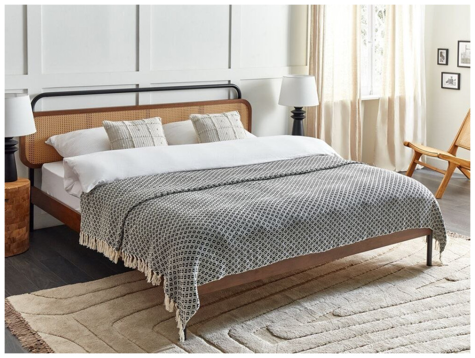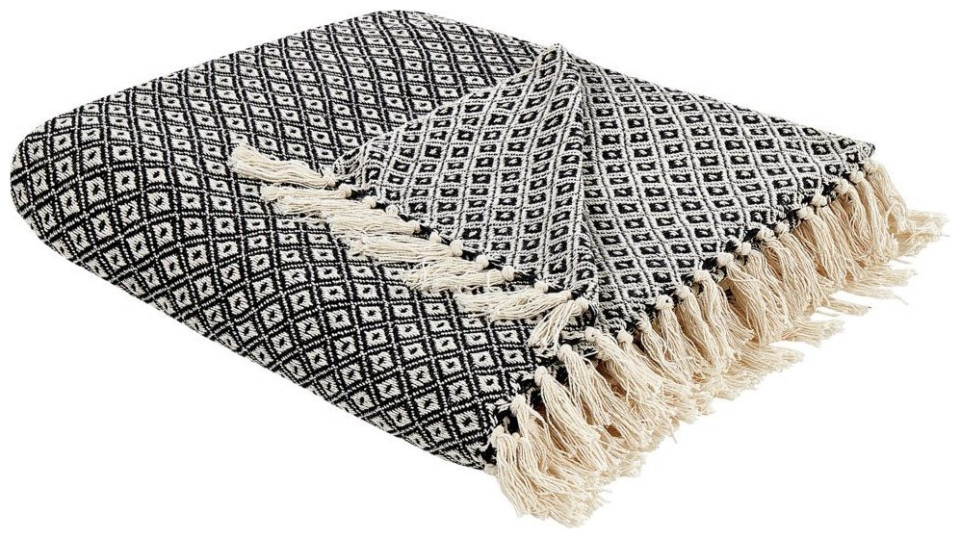 Beliani Koc bawełniany 220 x 240 cm czarno-biały CHYAMA