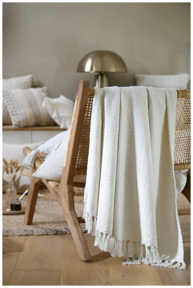 Βαμβακερή κουβέρτα με κρόσσια, BALMA, 125 x 150 cm