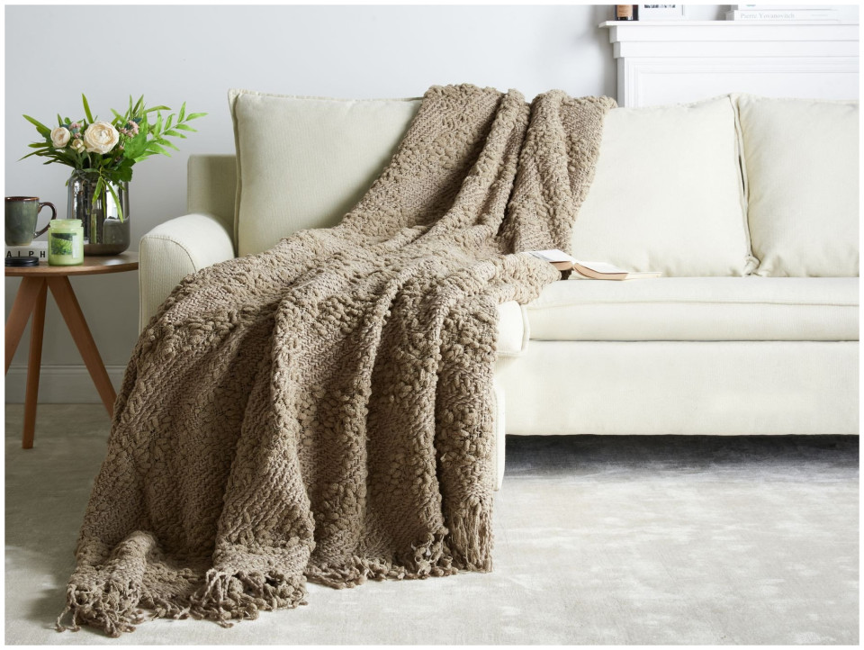 Κουβέρτα VELLA Βαμβάκι 200 x 220 cm Μπεζ-γκρι Lumarko!