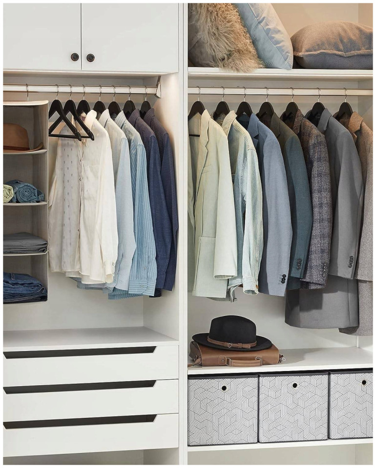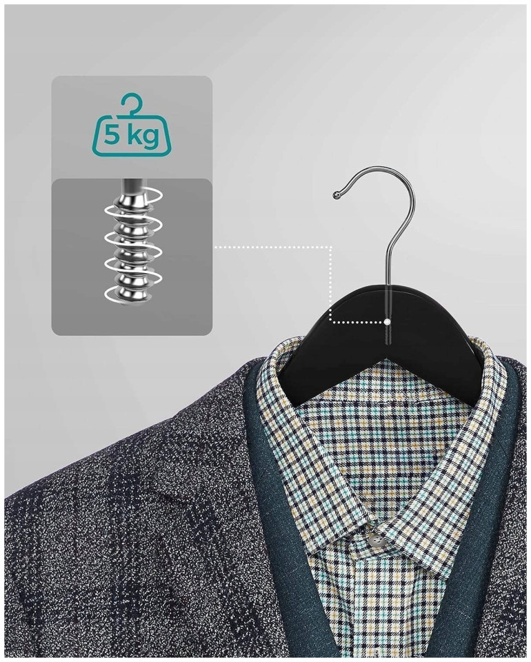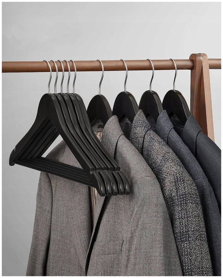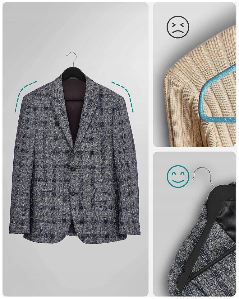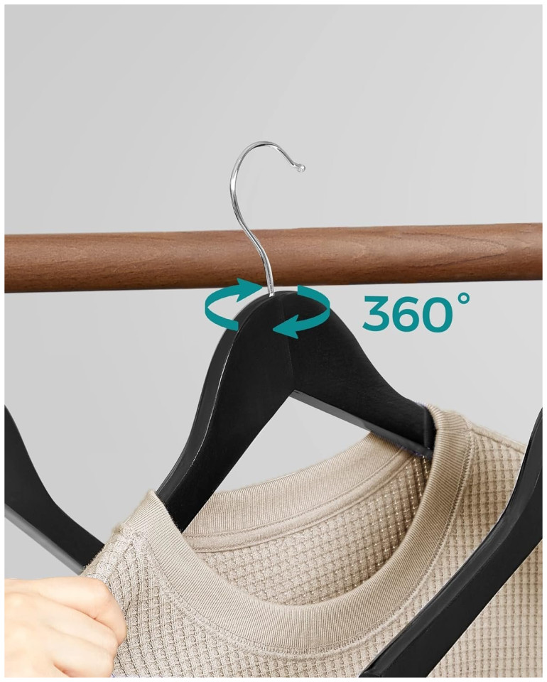 Ξύλινες κρεμάστρες SONGMICS, σετ 10, κρεμάστρες για παλτό, κρεμάστρες για ρούχα, με ώμο, αντιολισθητική μπάρα, γάντζος 360°