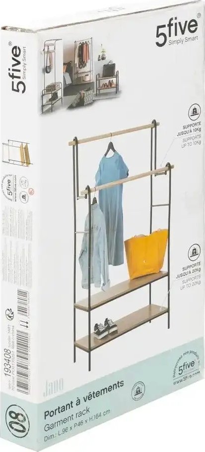 5five Επιδαπέδιος κρεμάστρας για ρούχα με ράφια για παπούτσια Jano, ύψος 164 εκ.