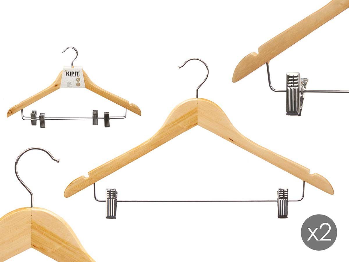 Kipit Ξύλινες κρεμάστρες ντουλάπας με μεταλλικά κλιπ COMFY PLACES, 2 τεμάχια