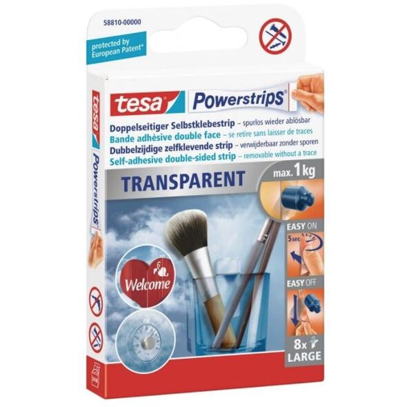 Tesa Powerstrips Διαφανή αυτοκόλλητα μπαλώματα, 8 τεμ., έως 1 κιλό