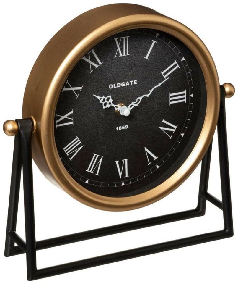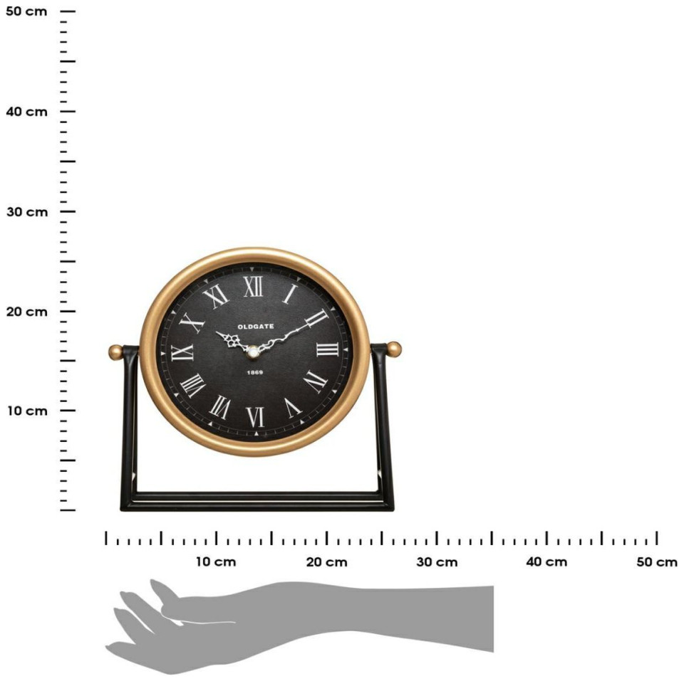 Αυθεντικό επιτραπέζιο ρολόι από μέταλλο. Ένα λειτουργικό και διακοσμητικό στοιχείο κάθε εσωτερικού σχεδιασμού. Ο μοναδικός σχεδιασμός κάνει το ρολόι μια ξεχωριστή προσθήκη που θα τονίσει τον χαρακτήρα ολόκληρης της διακόσμησης. Είναι τέλειο ως διακόσμηση για μια συρταριέρα και ως συμπλήρωμα σε μια διάταξη σε βιομηχανικό, μοντέρνο ή μινιμαλιστικό στυλ.