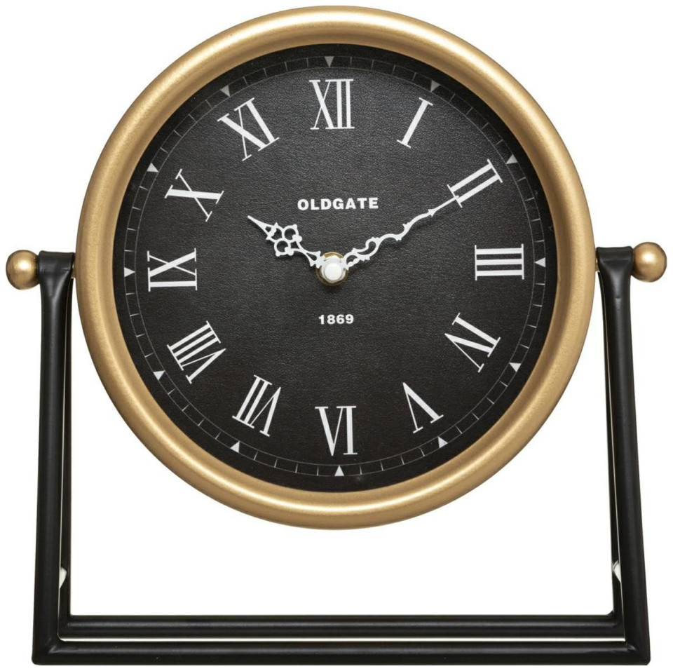 Επιτραπέζιο ρολόι Luca σε μεταλλική βάση Κατασκευασμένο από μέταλλο, καντράν καλυμμένο με γυαλί, ιδανικό για εσωτερικούς χώρους σε βιομηχανικό και στυλ loft Χαρακτηριστικά προϊόντος: Υλικά: Μέταλλο Χρώματα: Μαύρο Στυλ: Loft Ύψος: 26,5 cm Τροφοδοσία: 1xAA μπαταρία (δεν περιλαμβάνεται) Πλάτος: 27 cm Βάθος: 5,2 cm