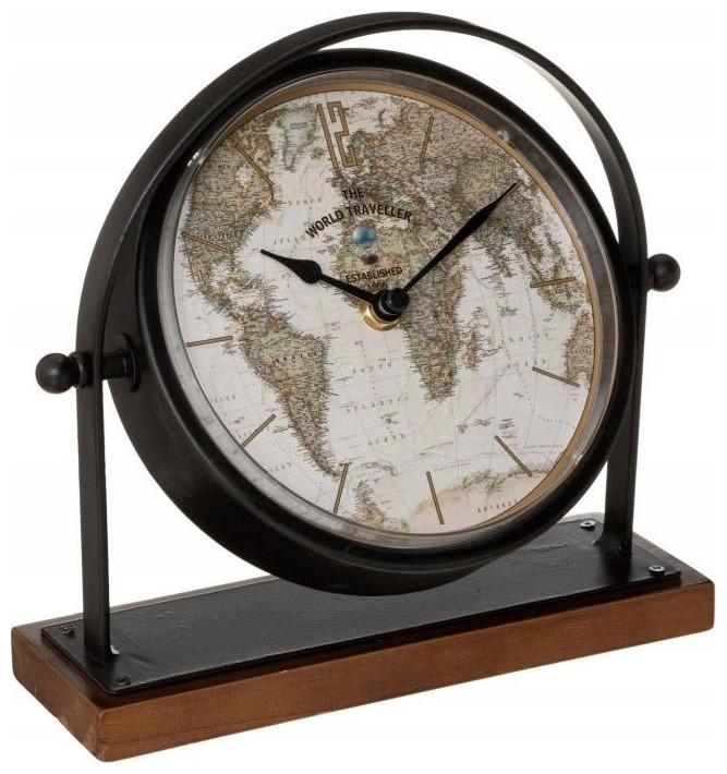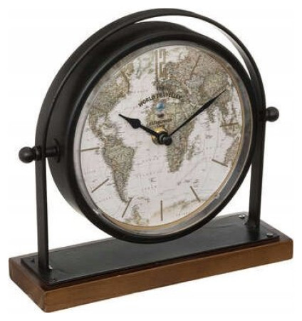 Ρολόι ρετρό για κομότα Flavia, καντράν με χάρτη κόσμου, ύψος 20 εκ.