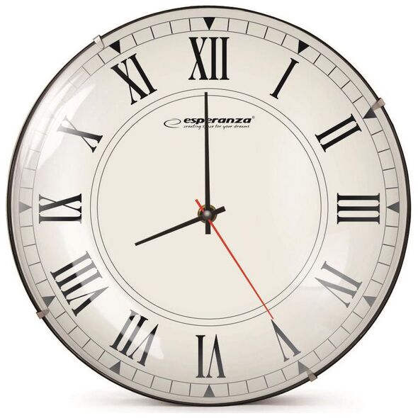 Ρολόι τοίχου Esperanza Roma με στυλιζαρισμένο καντράν και ώρες σε λατινικούς αριθμούς.{Type} Τοίχος . {Type} Αναλογικό . {Ξυπνητήρι} Όχι. {Χρώμα} Λευκό