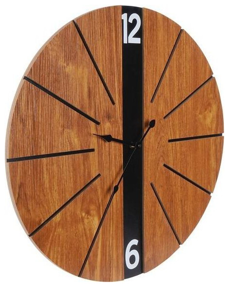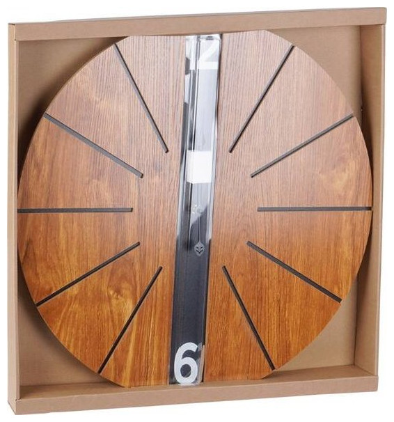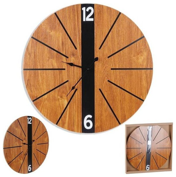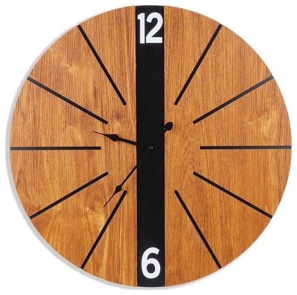 Home Styling Collection Ρολόι τοίχου με μινιμαλιστικό καντράν που μιμείται το ξύλο, MDF, Ø 60 cm