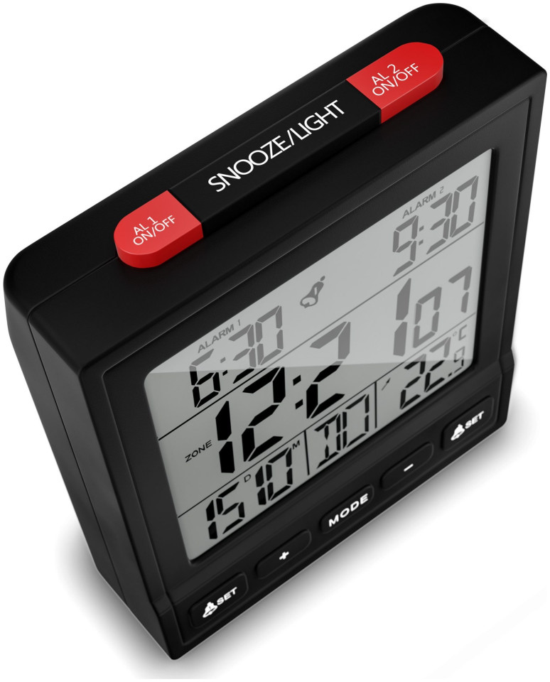 Mebus 25581. Μοντέλο: Ψηφιακό ξυπνητήρι, Σχήμα: Τετράγωνο, Χρώμα προϊόντος: Μαύρο. Τύπος οθόνης: LCD, Αριθμός γραμμών κειμένου: 3 γραμμές. Πηγή ισχύος: Μπαταρία, Τύπος μπαταρίας: AAA, Τάση μπαταρίας: 1,5 V. Πλάτος προϊόντος: 85 mm, Ύψος προϊόντος: 79 mm, Βάθος προϊόντος: 32 mm. Ποσότητα ανά συσκευασία: 1 τεμ., Τύπος συσκευασίας: Κουτί