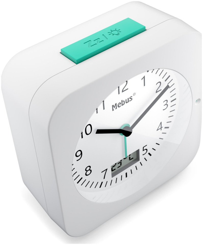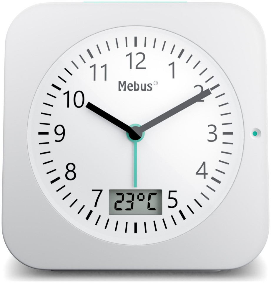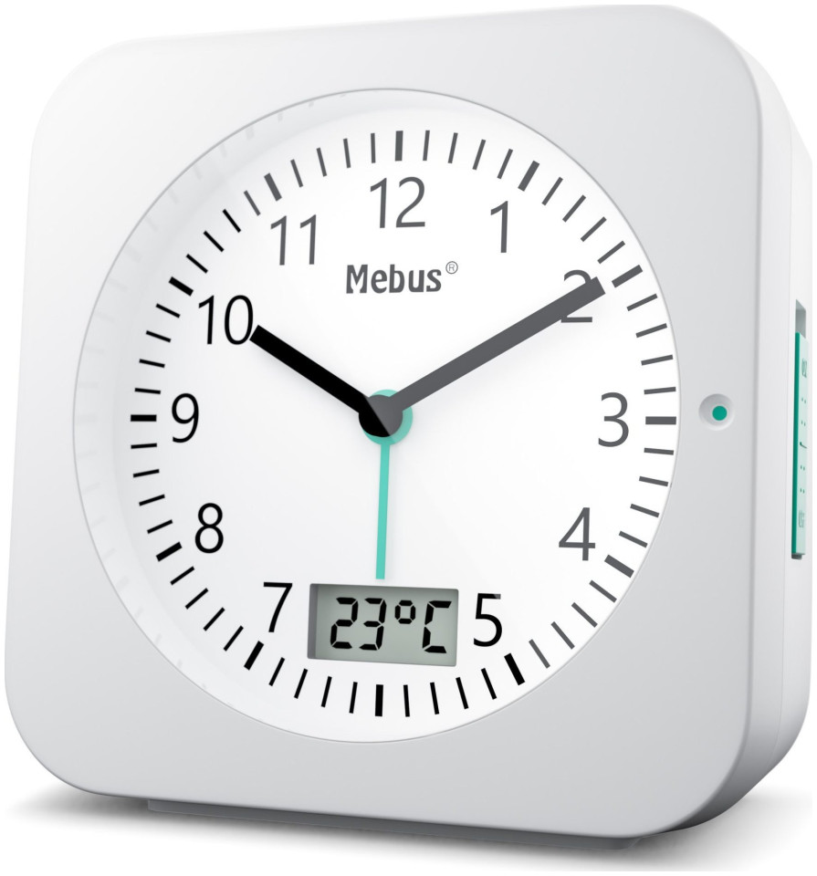 Mebus 25610. Μοντέλο: Ψηφιακό ξυπνητήρι, Χρώμα προϊόντος: Λευκό, Μορφή ώρας: 12h. Τύπος οθόνης: Αναλογική. Πηγή ισχύος: Μπαταρία, Τύπος μπαταρίας: AA, Τάση μπαταρίας: 1,5 V. Πλάτος προϊόντος: 94 mm, Ύψος προϊόντος: 93 mm, Βάθος προϊόντος: 30 mm. Ποσότητα ανά συσκευασία: 1 τεμ.{Type} Όρθια . {Type} Όρθια . {Type} Όρθια . {Type} Όρθια . {Type}Όρθια