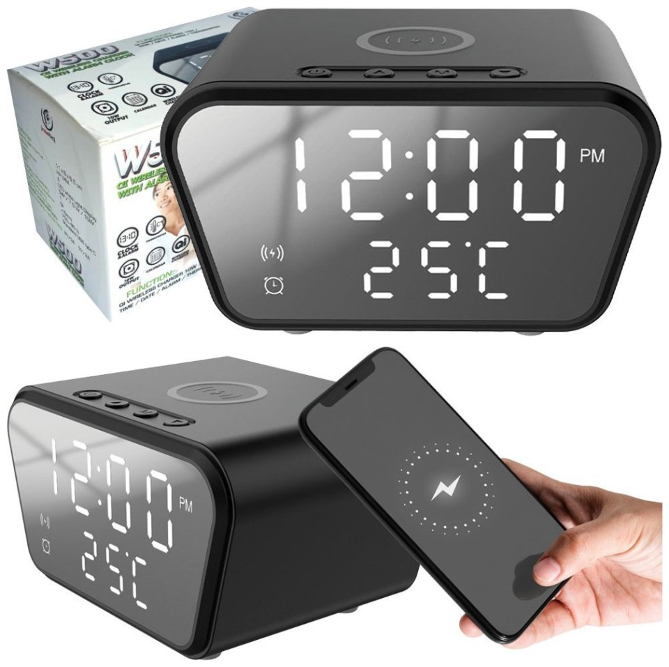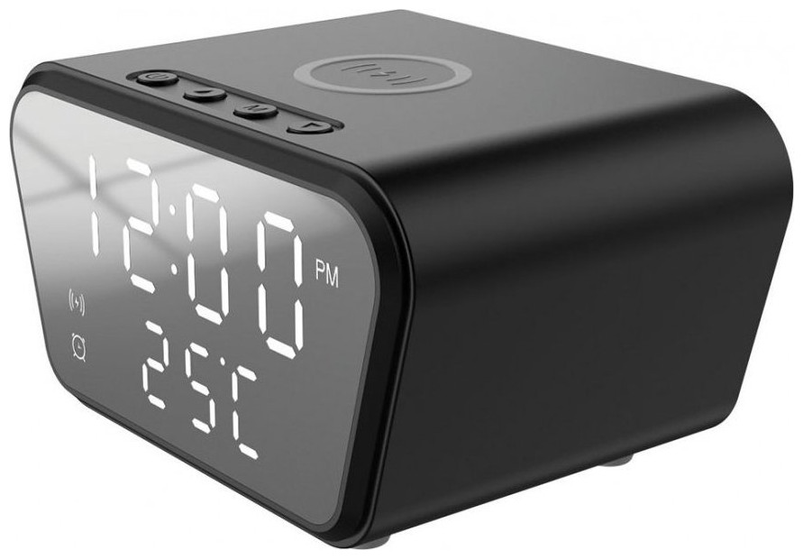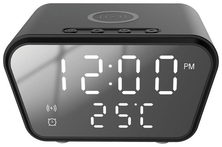 Rebeltec Ψηφιακό ξυπνητήρι Rebeltec με ασύρματο φορτιστή QI - μαύρο