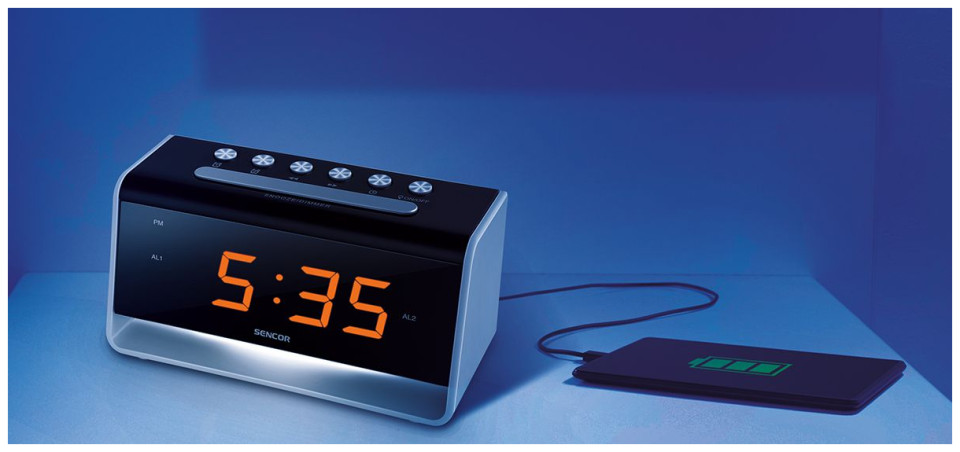 Φορτιστής USB: 5 V / 1000 mA Φως νύχτας LED Πορτοκαλί Οθόνη LED 2,3 cm (0,9") Ρυθμίσεις φωτεινότητας οθόνης Διπλός συναγερμός Ρολόι αφύπνισης βομβητή Εφεδρική μπαταρία για ρολόι CR-2032 1 x 3 V (δεν περιλαμβάνεται) Τροφοδοσία : AC 100-240 V, 50 / 60 Hz Διαστάσεις: (Π x Υ x Β) 135 x 68 x 60 mm Βάρος: 260 g (συμπεριλαμβανομένου του προσαρμογέα AC / DC){Type} Όρθια . {Type} Όρθια . {Type} Ψηφιακό . {Type} Ψηφιακό . {Ξυπνητήρι} Ναι. {Ξυπνητήρι} Ναι. {Color} Ασπρόμαυρο . {Color} Ασπρόμαυρο