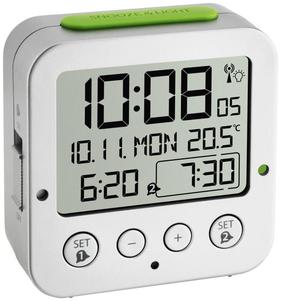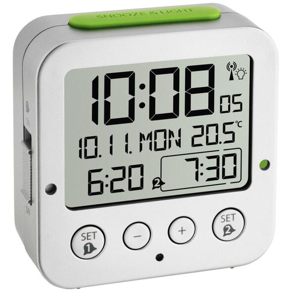 Ρολόι TFA με μεγάλη οθόνη και λειτουργία συναγερμού. Σας επιτρέπει να εμφανίσετε τη θερμοκρασία και την ημερομηνία.
