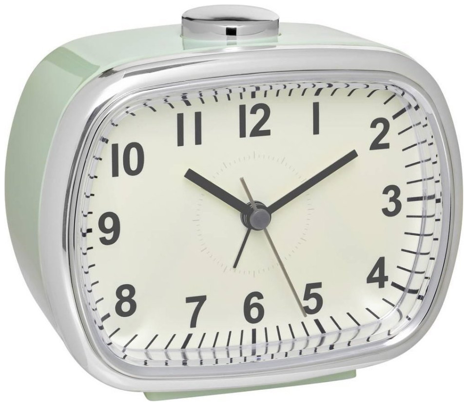 TFA-Dostmann 60.1032.04. Μοντέλο: Ξυπνητήρι Quartz, Σχήμα: Ορθογώνιο, Χρώμα προϊόντος: Μέντα, Ασημί. Τύπος οθόνης: Αναλογική. Πηγή ισχύος: Μπαταρία, Τύπος μπαταρίας: C, Τάση μπαταρίας: 1,5 V. Πλάτος προϊόντος: 110 mm, Ύψος προϊόντος: 92 mm, Βάθος προϊόντος: 60 mm. Ποσότητα ανά συσκευασία: 1 τεμ.{Type}Όρθια