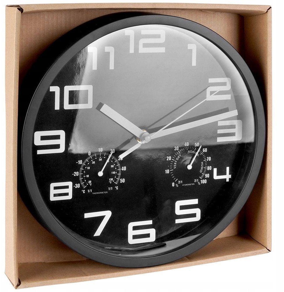Ρολόι τοίχου με θερμόμετρο και υγρόμετρο μαύρο 25 εκ