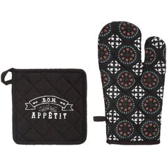Γάντι κουζίνας Atmosphera + σουπλά, σετ, μαύρο χρώμα