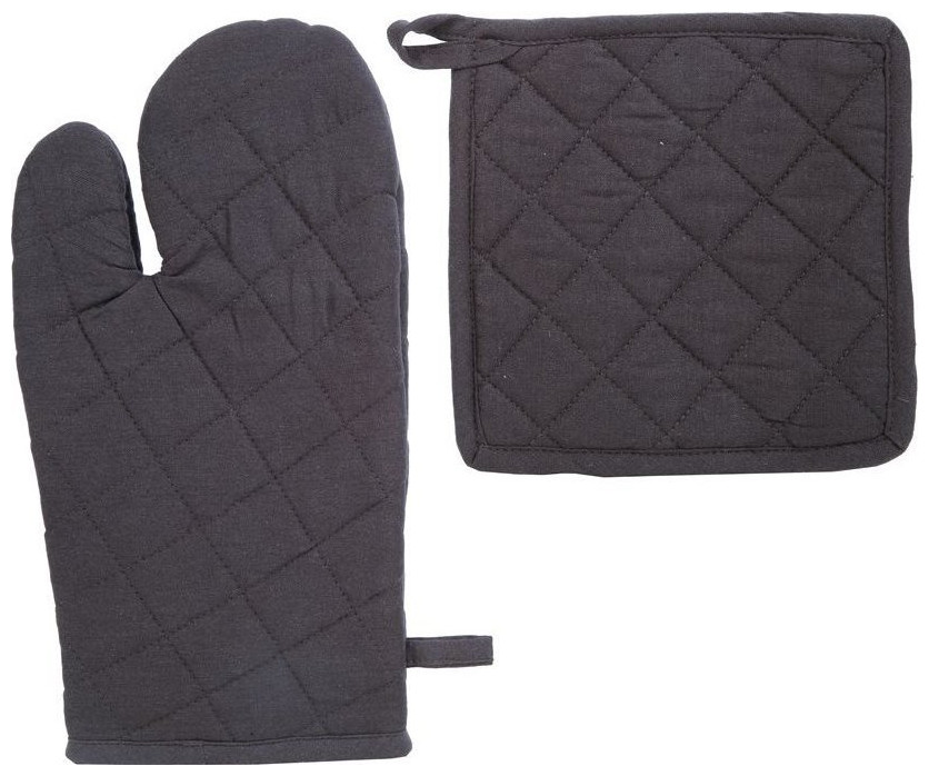 ATMOSPHERA Γάντι κουζίνας + γάντι φούρνου, βαμβάκι, μαύρο σετ
