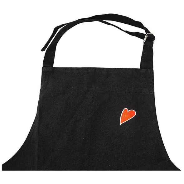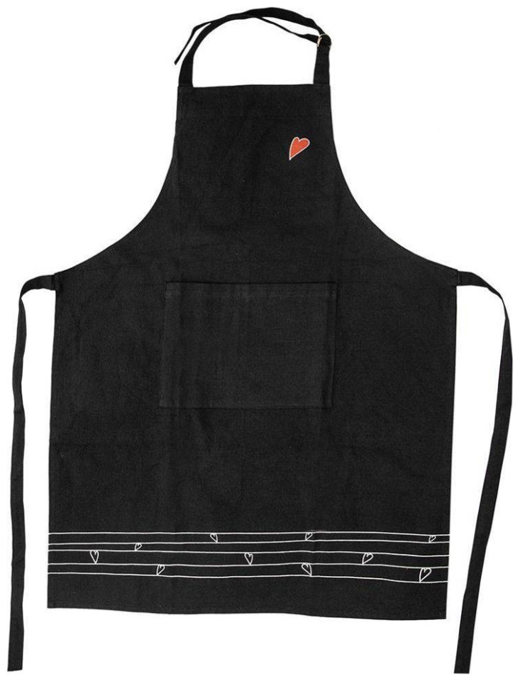 ΒΑΜΒΑΚΙ - Βαμβακερή, δεμένη ποδιά κουζίνας σε μαύρο χρώμα με μοτίβο καρδιά. Μια κομψή ποδιά θα είναι ένα ενδιαφέρον προστατευτικό και διακοσμητικό στοιχείο των ρούχων στην κουζίνα. Ποδιά κουζίνας, μήκους 87 cm και πλάτους 70 cm.