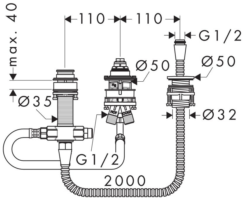 Σετ βάσης Hansgrohe για μπαταρία 3 οπών για τοποθέτηση στην άκρη της μπανιέρας (13439180)