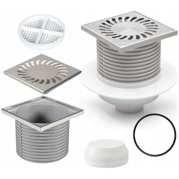 Chudej Κάτω αποχέτευση δαπέδου D50 ύψος 102÷156 122x122 σχάρα ανοξείδωτου χάλυβα με τετράγωνο φλάντζα