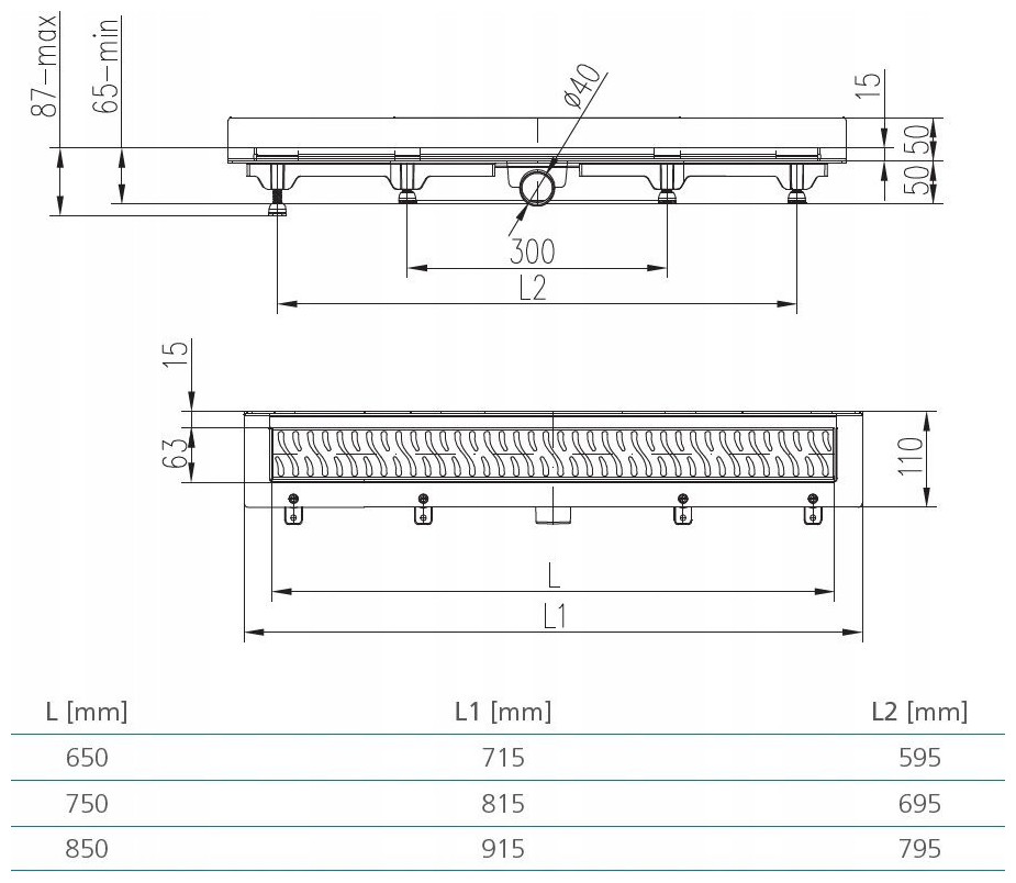 Chudej Γραμμική αποχέτευση δαπέδου 750mm Klasik / Δάπεδο γυαλιστερό