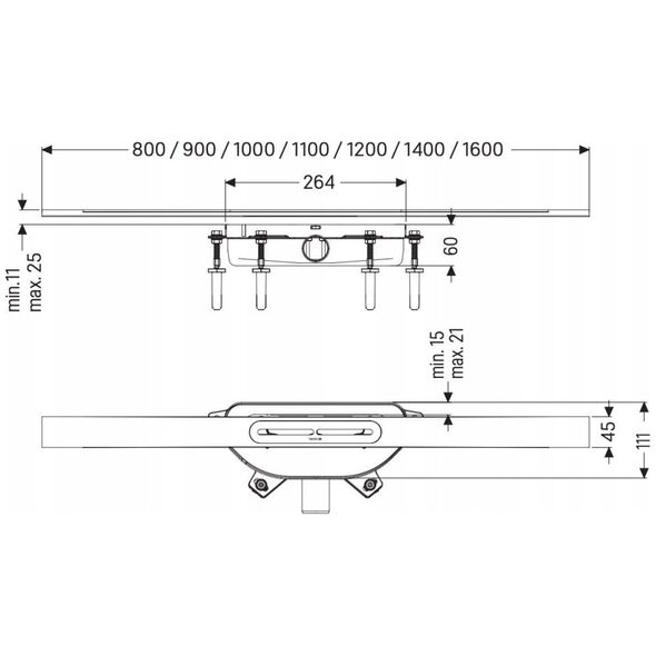 Kessel Linearis Infinity 60 με μηχανικό σιφόνι Megastop| Βουρτσισμένη επιφάνεια - μαύρη| 800 mm