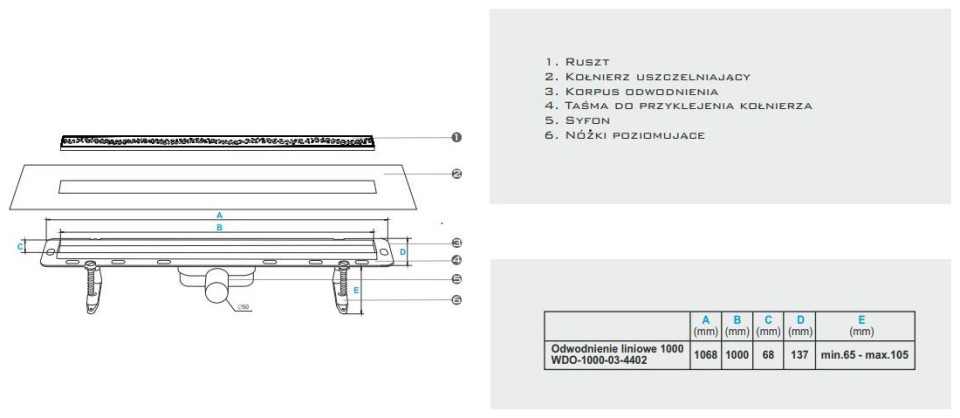 WINKIEL Γραμμική αποχέτευση με σχάρα Ekoline Perle 100cm (WDO-1000-03-4402)