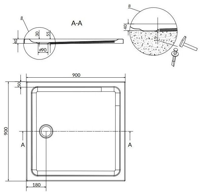 Cersanit (καμπίνες ντους με ντουζιέρα) SET B153 Καμπίνα ARTECO τετράγωνη - (90x90x190), με ντουζιέρα TAKO - (90x4) (S601-116)