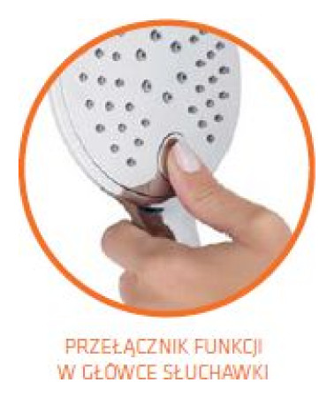 Χειροκίνητο ντους 3 λειτουργιών (κανονικό τζετ, μαστίγιο, υδρομασάζ), διακόπτης λειτουργίας στην κεφαλή ντους, κεφαλή Ø 12 cm, κατά των αλάτων
