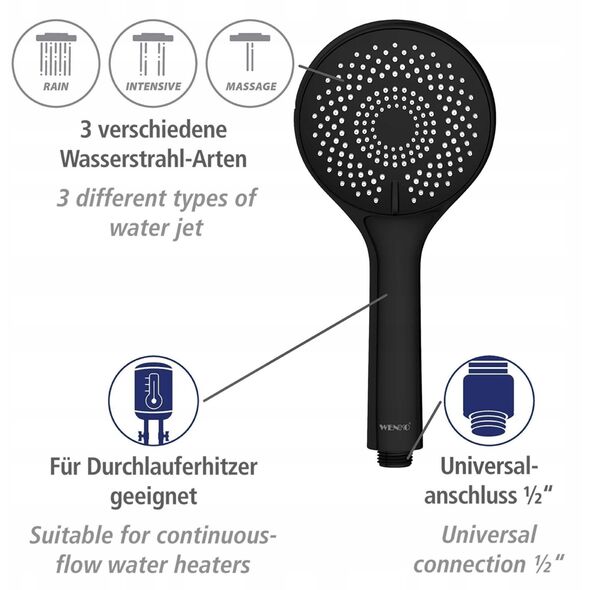 Ακροφύσιο ντους εξοικονόμησης νερού, Ø 11 cm, WENKO
