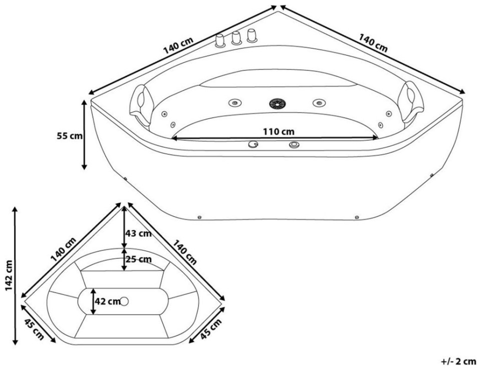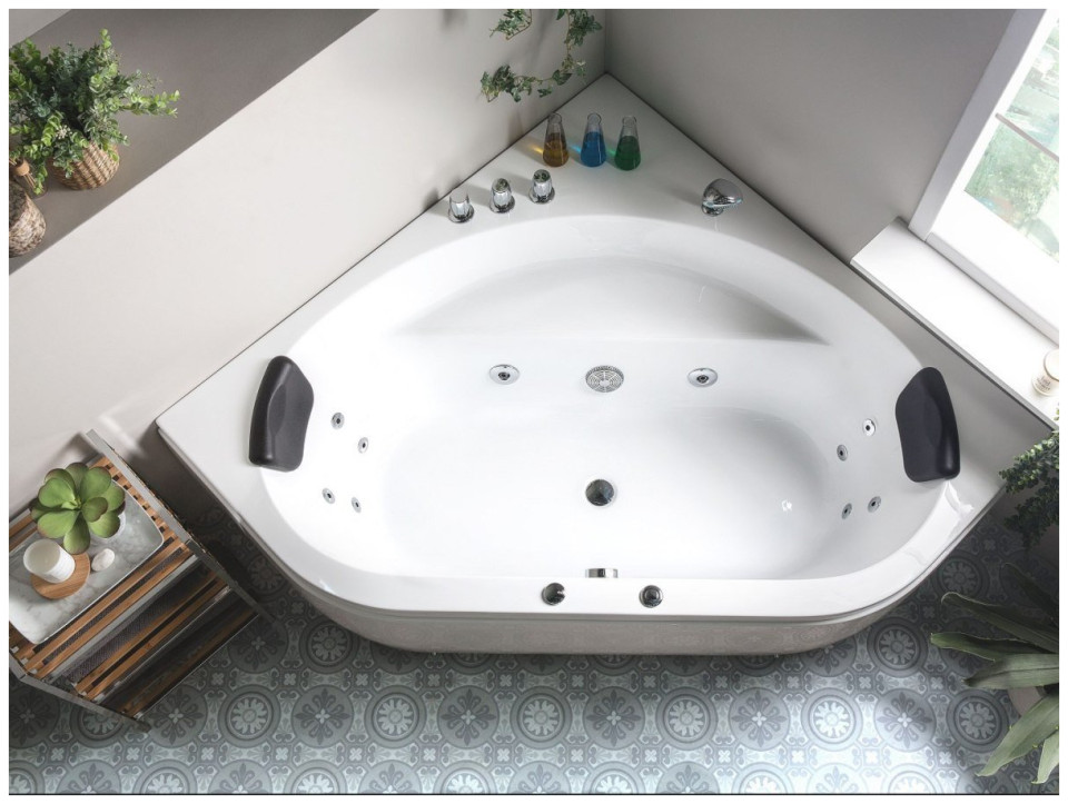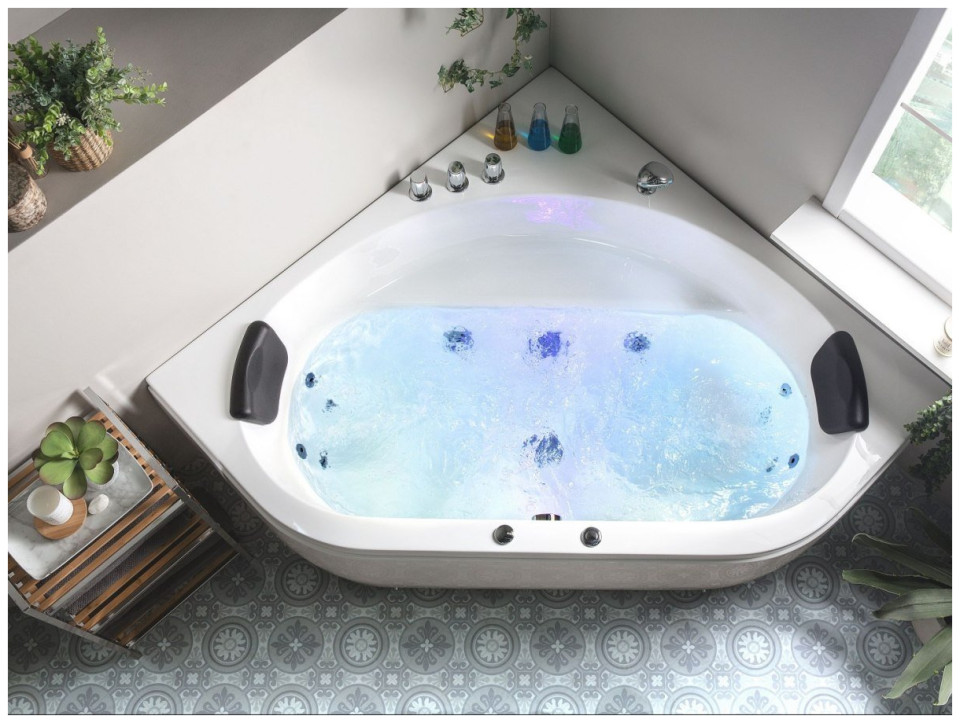 Wanna Beliani Wanna narożna LED z hydromasażem 140 x 140 cm biała MEVES