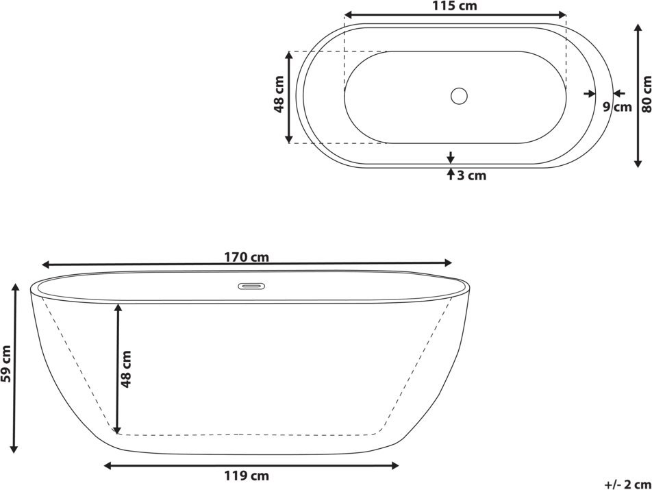 Wanna Beliani Wanna wolnostojąca LED z hydromasażem 170 x 80 cm czarna NEVIS