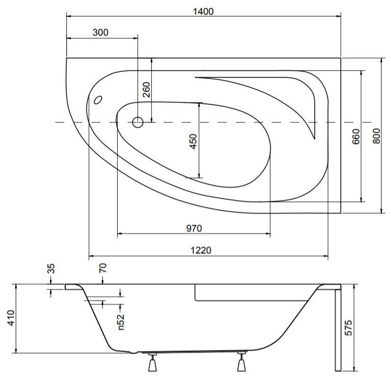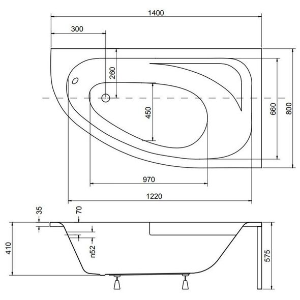 Μπανιέρα Besco WANNA ASYM CORNEA 140X80X54 LEWA +W