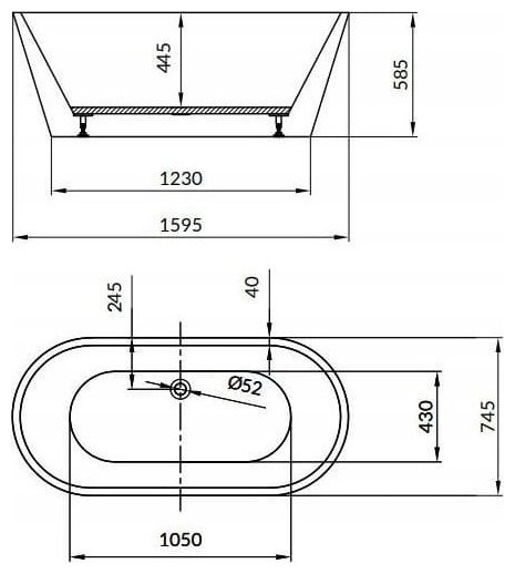Μπανιέρα Cersanit ΜΠΑΝΙΕΡΑ ΕΛΕΥΘΕΡΗΣ ΣΤΑΘΜΗΣ ΟΒΑΛΗ CREA 160X75 (S301-300) - 10S301-300