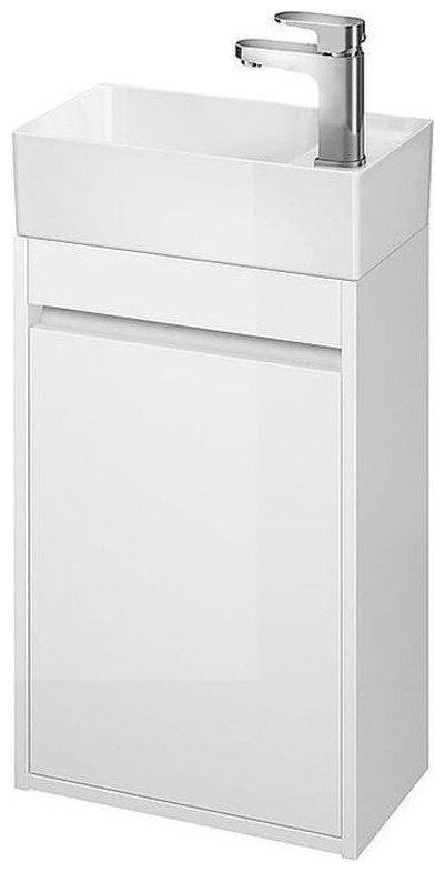 W skład zestawu wchodzą wisząca szafka podumywalkowa CREA 40 z umywalką meblową CREA 40. Front oraz korpus szafki wykonany z odpornej na wilgoć płyty wiórowej w kolorze białym. Szafka jest wyposażona w system dotykowego otwierania (tzw. PUSH SYSTEM). Wnętrze o strukturze szarego lnu nadaje szafce dodatkowego eleganckiego wyglądu. Umywalka CREA wytworzona jest z masy ceramicznej ROCKLITE, dzięki czemu jest zadziwiająco wytrzymała jest lekka i o niezwykle cienkich ściankach.