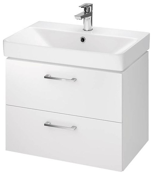 W skład zestawu wchodzą wisząca szafka podumywalkowa LARA BIAŁA 60 z umywalką MILLE SLIM 60. Front oraz korpus szafki z płyty wiórowej 16 mm, lakierowanej w kolorze białym. Szafka posiada dwie pojemne szuflady z cichym domykiem oraz chromowanymi, dłuższymi uchwytami. Mebel do samodzielnego montażu.