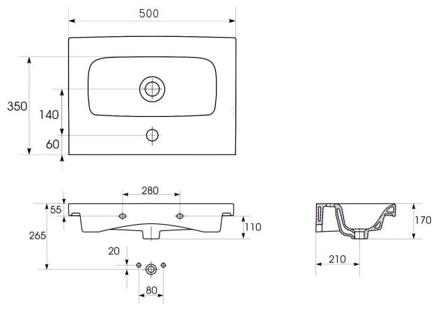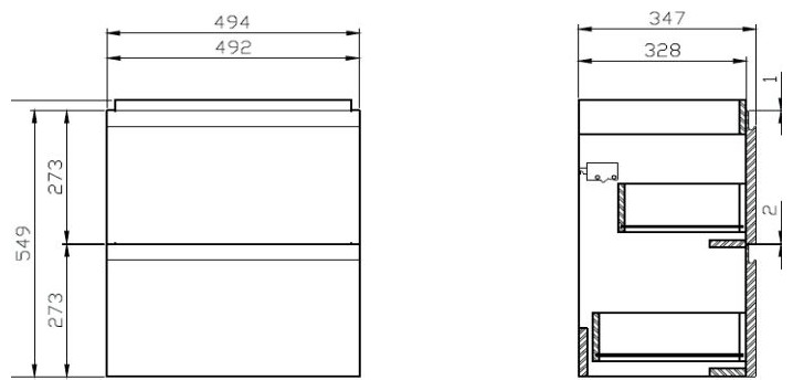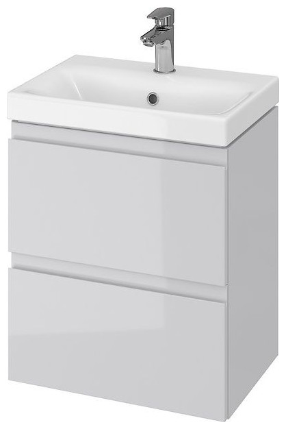 Zestaw składa się z umywalki 50 cm o zmniejszonej głębokości oraz dopasowanej do niej szafki podumywalkowej.