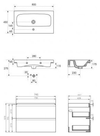 Το σετ περιλαμβάνει νιπτήρα επίπλων πλάτους 80 cm και ασορτί ντουλάπι νιπτήρα.
